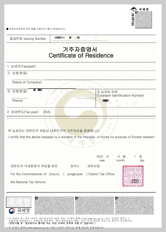 "조세목적상 대한민국 거주자임을 증명할 필요가 있는 경우"