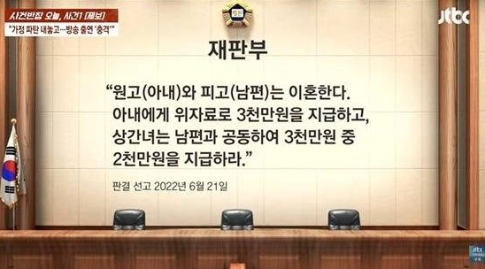 상간녀인 출연자에게 법적인 책임을 검토 중이라고 합니다.